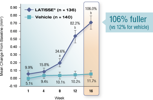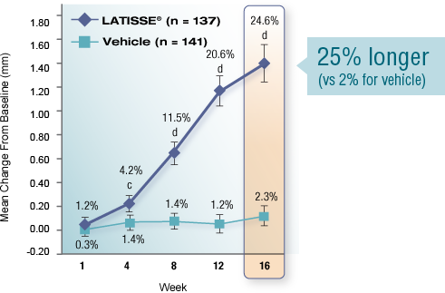 LATISSE® (bimatoprost ophthalmic solution) 0.03% is indicated to treat hypotrichosis of the eyelashes by increasing their growth, including length, thickness, and darkness.